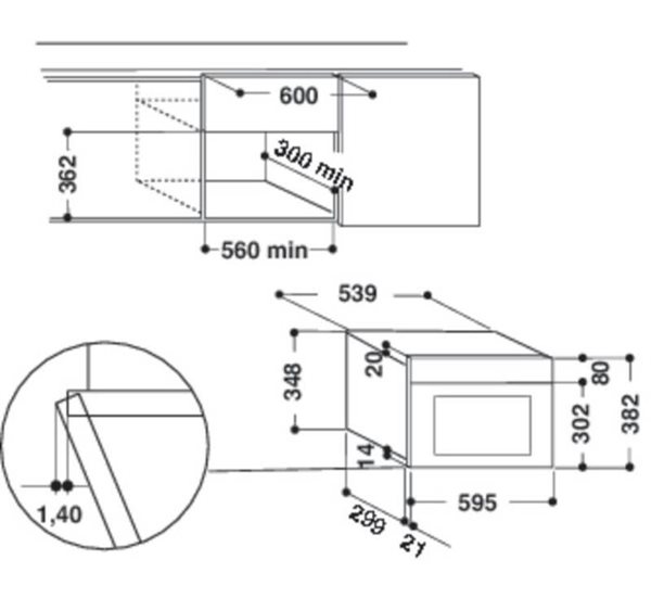 mikrovlnná trouba pro ohřev • vestavná MINI BI • systém distribuce mikrovln 3D • design ABSOLUTE Core • dětská pojistka • lakovaný interiér • JetDefrost • Jet Start • úprava povrchu proti otiskům • otočný talíř průměr 25 cm • vnitřní objem 22 l • mikrovlnný výkon 750 W • příkon 1 300 W • nerez • design ABSOLUTE Core • rozměry (v × š × h): 38 × 59 × 32 cm